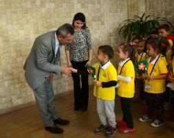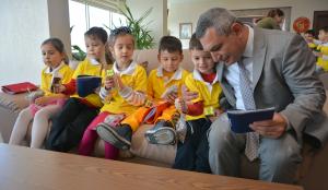 Prof. Dr. Yücel Acer’in Öğretmenler Gününü kutlayan çocuklar, Acer’e kendi yaptıkları hediyeleri sunarak Öğretmenler Günü şarkısını söylediler. Acer’in tek tek ilgilendiği Çocuklar Evi Kreş ve Anaokulu öğrencileri, yapılan ikramlardan çok memnun oldular.