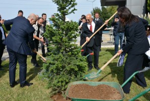 Programın ardından ÇOMÜ Rektörlük Binası önünde fidan dikimi