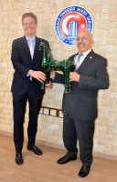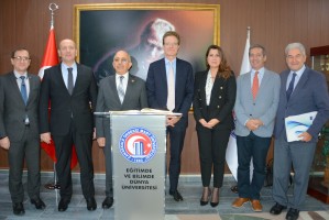 Yenilenebilir Enerji Yatırımlarının İstihdama Etkisi Çalıştayı için Çanakkale de bulunan AB Türkiye Delegasyonu Başkanı Büyükelçi Nikolaus Meyer Landrut, Çalışma ve Sosyal Güvenlik Bakan Yardımcısı Prof. Dr. Lütfihak Alpkan, Avrupa Birliği Türkiye Delegasyonu Eğitim Sektör Koordinatörü Prof. Dr. Mustafa Balcı, Güney Marmara Kalkınma Ajansı (GMKA) Genel Sekreteri Abdullah Güç ve beraberindeki heyet ÇOMÜ Rektörü Prof. Dr. Sedat Murat’ı makamında ziyaret etti. Ziyarette; Rektör Yardımcıları Prof. Dr. Hüseyin Erkul, Prof. Dr. Pelin Kanten, Prof. Dr. Okhan Akdur, Genel Sekreter Ayhan Monus hazır bulundu.
