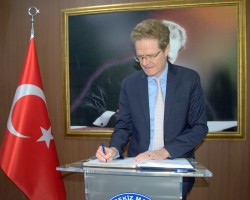 AB Türkiye Delegasyonu Başkanı Büyükelçi Nikolaus Meyer Landrut ziyaret öncesinde ÇOMÜ Şeref Defteri imzalayarak, ziyaretten duyduğu memnuniyeti aktardı. Ziyaret hediye takdimi ve fotoğraf çekimiyle son buldu.