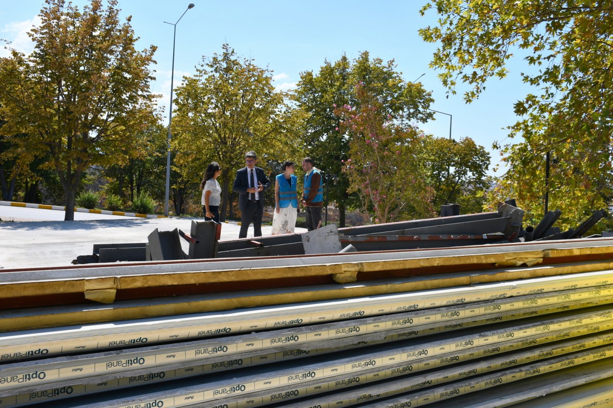 ÇOMÜ Rektörü Prof. Dr. R. Cüneyt Erenoğlu, Sosyal Sorumluluk Proje Koordinatörü Doç. Dr. Hicran Özlem Ilgın ile birlikte şantiye alanında incelemelerde bulundu. İnşaatın ilerleyişi hakkında yetkililerden bilgi alan Rektör Erenoğlu, ÇOMÜ Butik’in yeni mekânında daha etkin ve geniş kapsamlı hizmetler sunacağına vurgu yaptı.