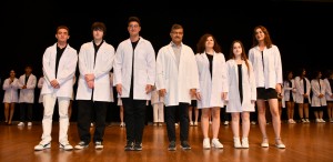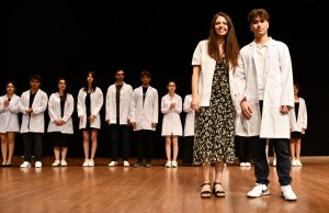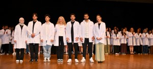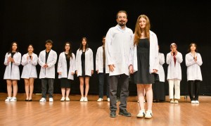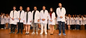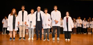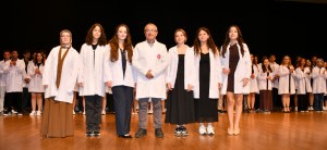 Konuşmaların ardından öğrenciler, hocalarının ellerinden beyaz önlüklerini giydi.
