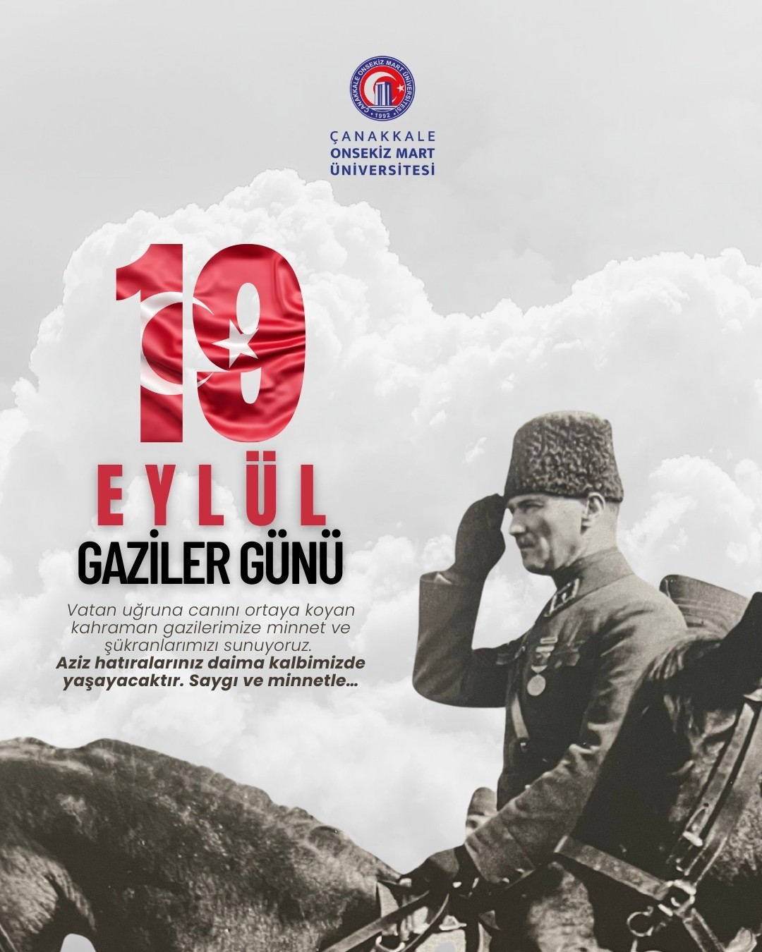 Bu duygu ve düşüncelerle başta Gazi Mustafa Kemal Atatürk ve silah arkadaşları olmak üzere istiklal ve istikbalimiz için canlarını veren aziz şehitlerimizi ve kahraman gazilerimizi saygı ve minnetle anıyor, hayatta olan gazilik mertebesi ile şereflenmiş gazilerimize de sağlıklı, uzun ömürler diliyorum.