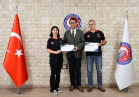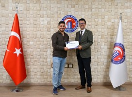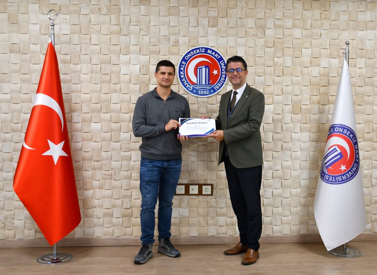 Belge takdim töreninde Rektör Erenoğlu, ÇOMÜ öğrencilerinin bilimsel üretkenlikleri ve yenilikçi bakış açılarıyla Türkiye’nin teknoloji hamlesine önemli katkılar sunduğunu belirterek şunları söyledi: