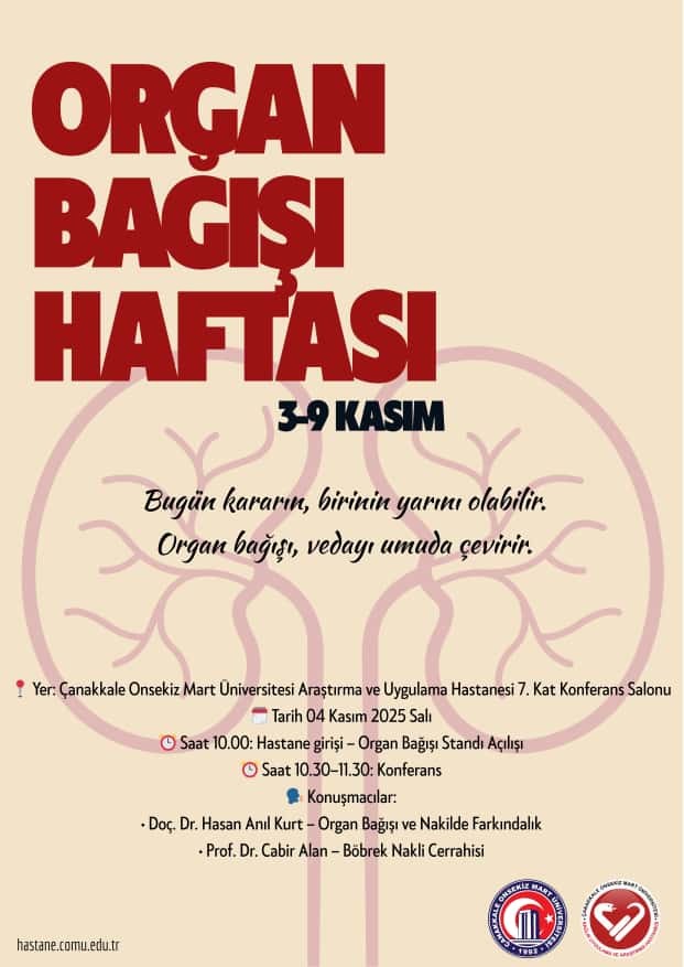 Bu anlayışla, 03–09 Kasım Organ Bağışı Haftası kapsamında üniversitemiz Sağlık Uygulama ve Araştırma Hastanesi bünyesinde farkındalık oluşturmak amacıyla bir dizi etkinlik gerçekleştirilecektir.