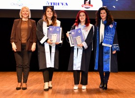 Törende genel sıralamada birinci olan öğrenciler, isim plaketlerini ÇOMÜ Rektör Vekili Prof. Dr. Evren Karayel Gökkaya ve Enstitü Müdürü Prof. Dr. Melis Ulu Doğru eşliğinde Enstitü Mezun Kütüğü ’ne yerleştirdi.