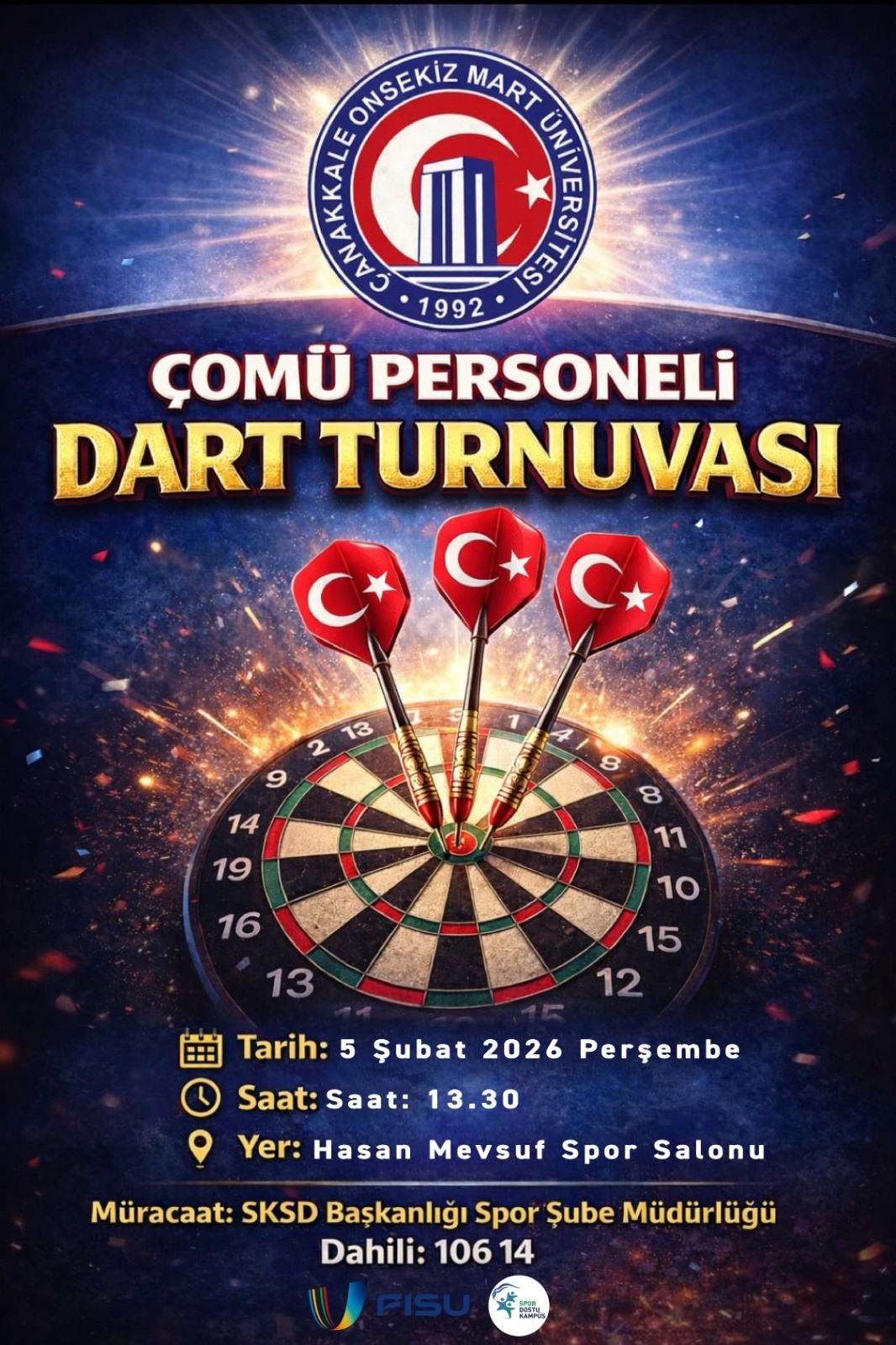 Başkanlığı tarafından sportif faaliyetler kapsamında “ÇOMÜ Personeli Dart