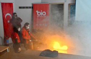 Katılımcılara yangın güvenliği, yangın anında doğru müdahale yöntemleri ve