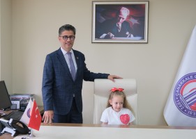 Erenoğlu’nun makamını devrettiği minik öğrenciler, kısa süreliğine üniversite