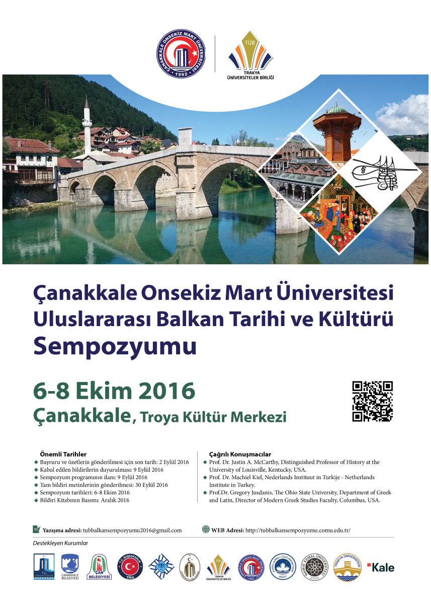 Trakya Üniversiteler BirliÄi'nin giriÅimi ile Çanakkale Onsekiz Mart Üniversitesi ev sahipliÄinde 6-8 Ekim 2016 tarihleri arasında "Uluslararası Balkan Tarihi ve Kültürü Sempozyumu" gerçekleÅtirilecektir.