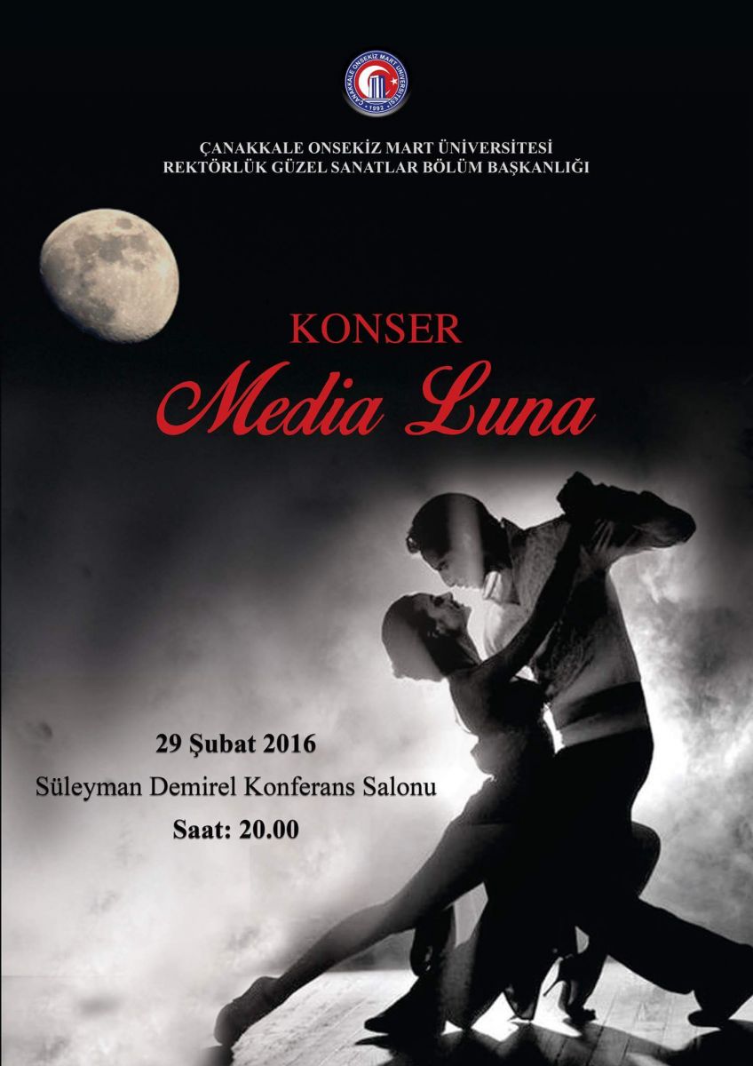 Çanakkale Onsekiz Mart Üniversitesi Rektörlük Güzel Sanatlar Bölüm Başkanlığı öğretim elemanı Okt. Dr. Filiz Kaya'nın hazırlamış olduğu ve İTÜ öğretim elemanları Ceyda Ova Çiçek ve Doğuş Çiçek'in konuk olarak katılacağı "Media-Luna" isimli tangolar konserine tüm müzikseverler davetlidir.