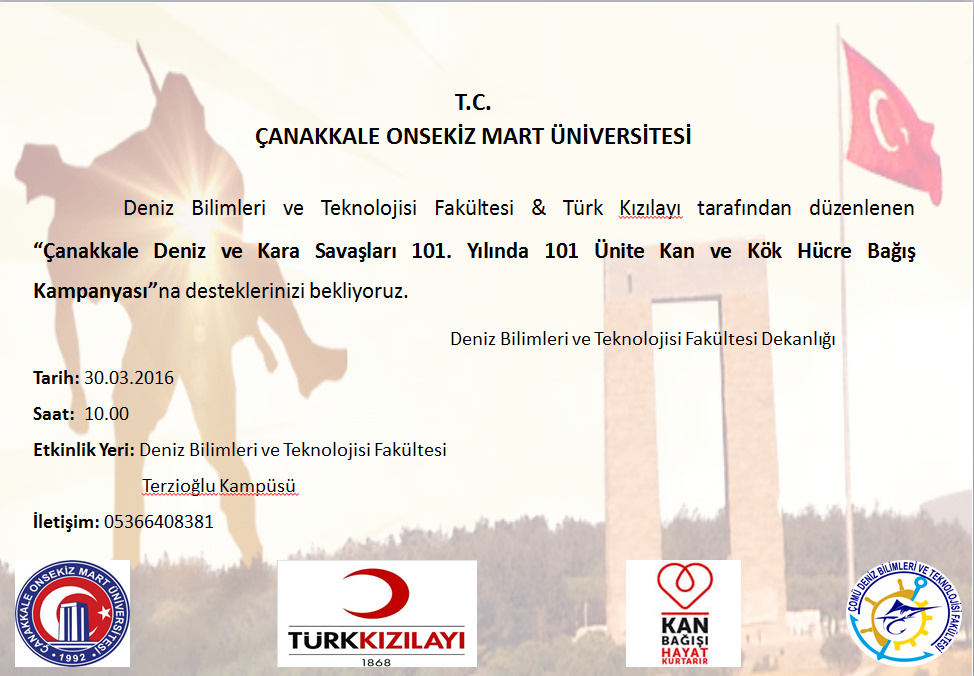 Çanakkale Deniz ve Kara Savaşları’nın 101. Yılında 101 Ünite Kan ve Kök Hücre Bağış Kampanyası