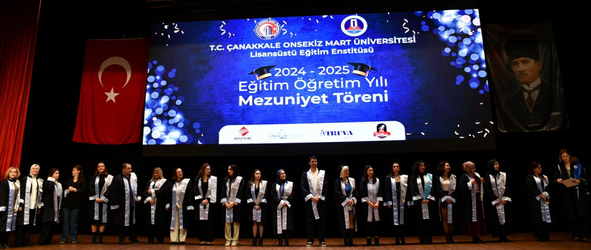 Çanakkale Onsekiz Mart Üniversitesi Lisansüstü Eğitim Enstitüsü 2024-2025 Akademik Yılı Mezuniyet Töreni, İÇDAŞ Kara Yusuf Kongre Merkezi’nde gerçekleştirildi.
