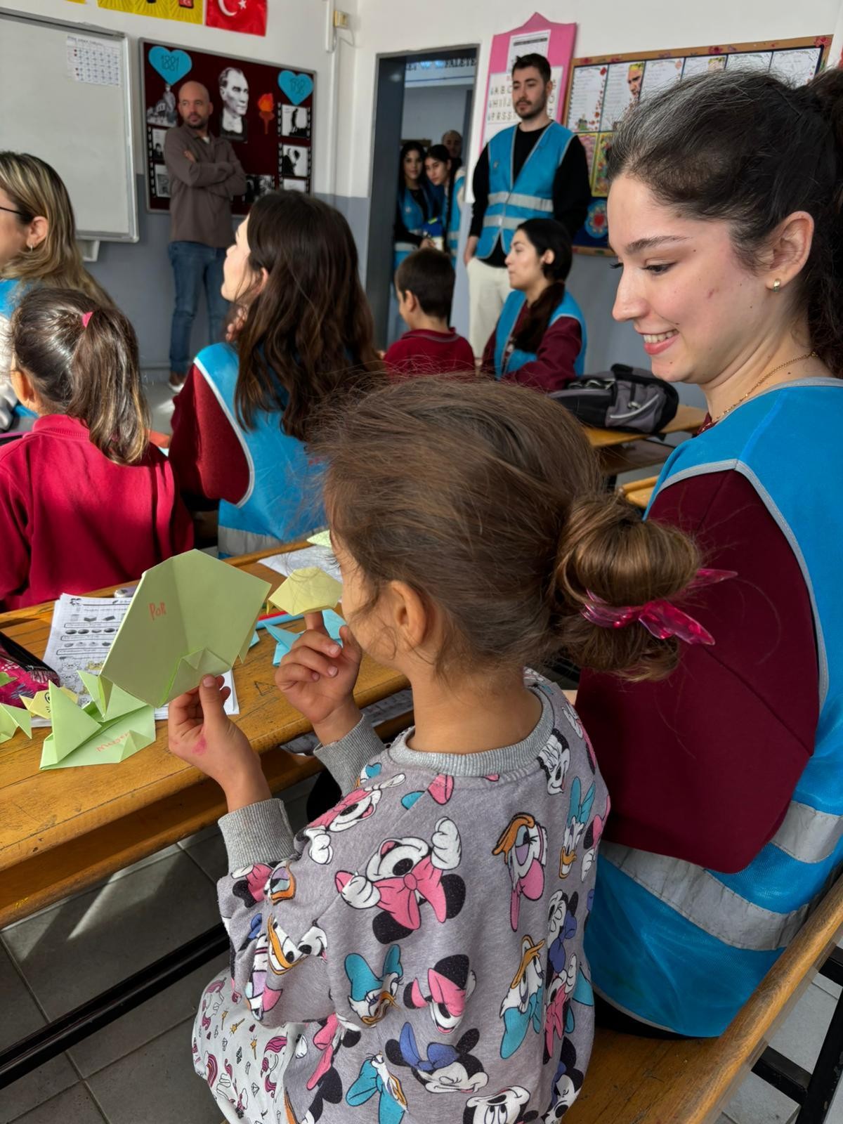 Çanakkale Onsekiz Mart Üniversitesi Sağlık Bilimleri Fakültesi Hemşirelik Bölümü ve Sosyal Sorumluluk Proje Koordinatörlüğü tarafından köy okulunda öğrenim gören öğrencilere “Minik Eller, Büyük Hayaller Projesi” kapsamında Akçapınar İlkokulu öğrencilerine sağlık bilimleri öğrencileriyle origami tekniğiyle hayaller güçlerine yönelik çalışmalar gerçekleştirildi. Sağlık Bilimleri Fakültesi, Hemşirelik Bölümü Öğretim Üyesi Prof. Dr. Nazan Çalbayram koordinasyonunda gerçekleştirildi. Etkinliğe katılan minikler keyifli anlar geçirirken hemşirelik bölümü öğrencilerimiz katılımdan mutlu olduklarını dile getirdiler.