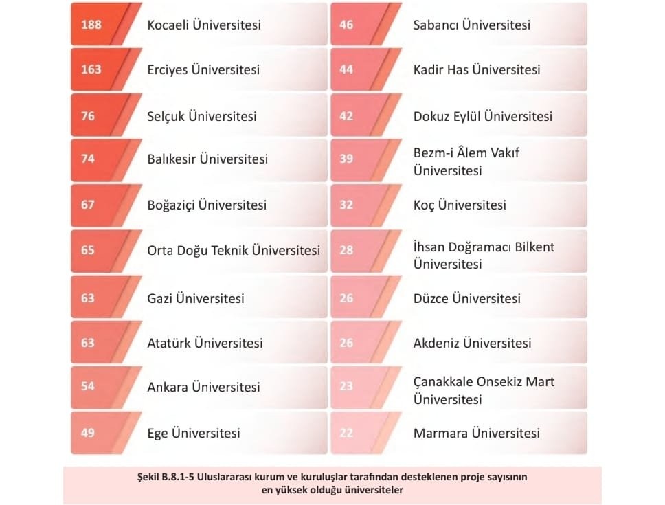 * Uluslararası Başarı: Yurt dışı kaynaklı 27 Ar-Ge projesi ve uluslararası kuruluşlarca desteklenen 23 proje ile küresel araştırma ağlarında en aktif rol alan üniversitelerden biri oldu.
