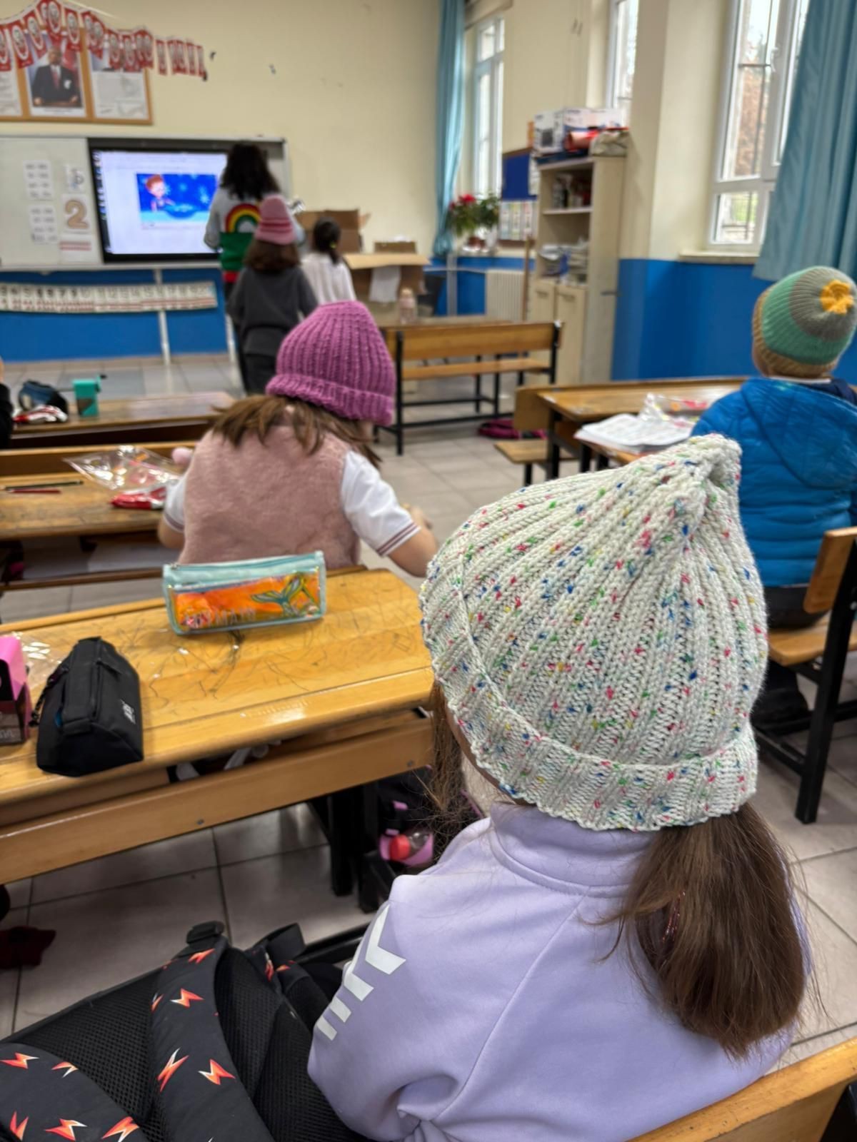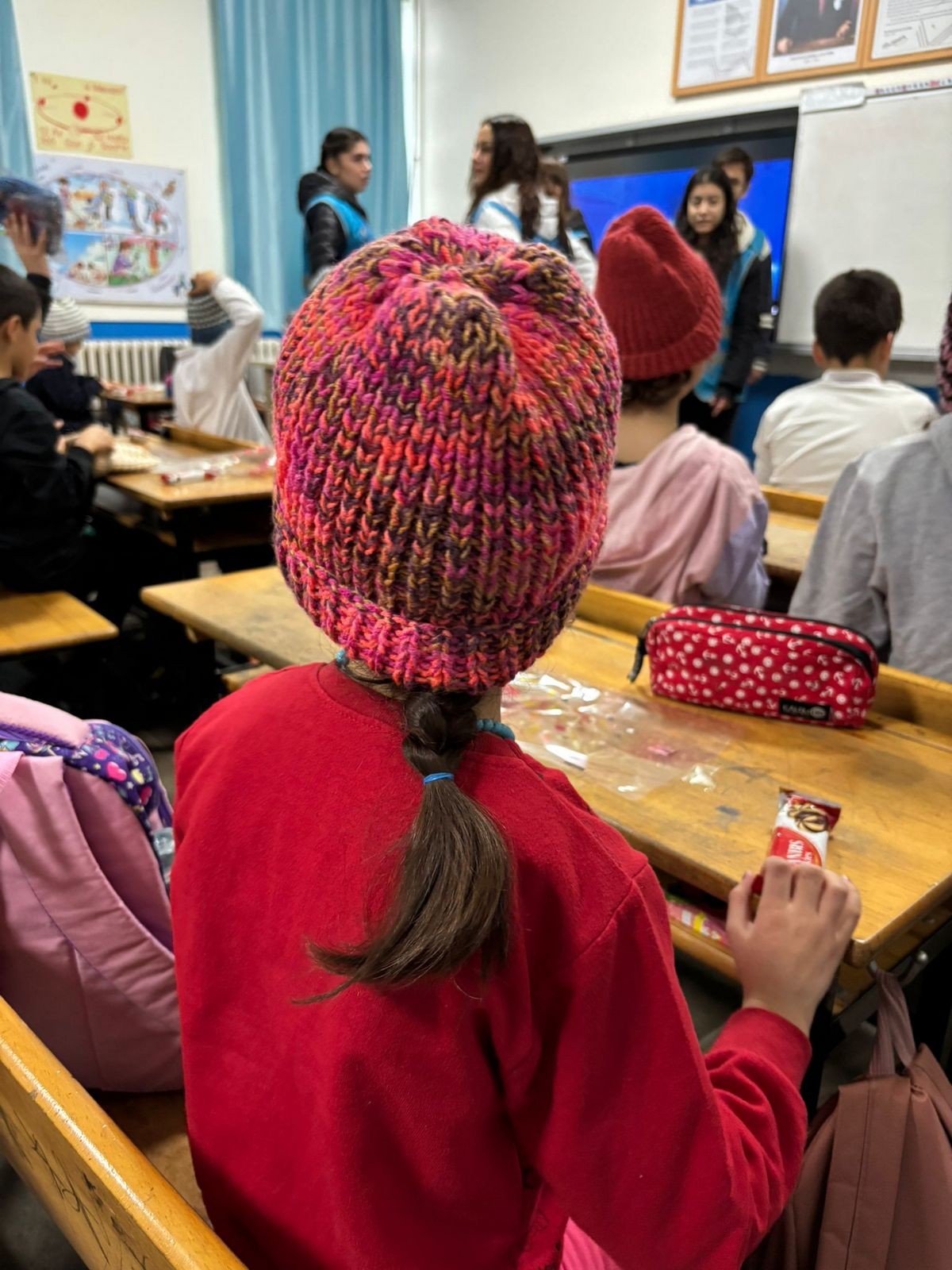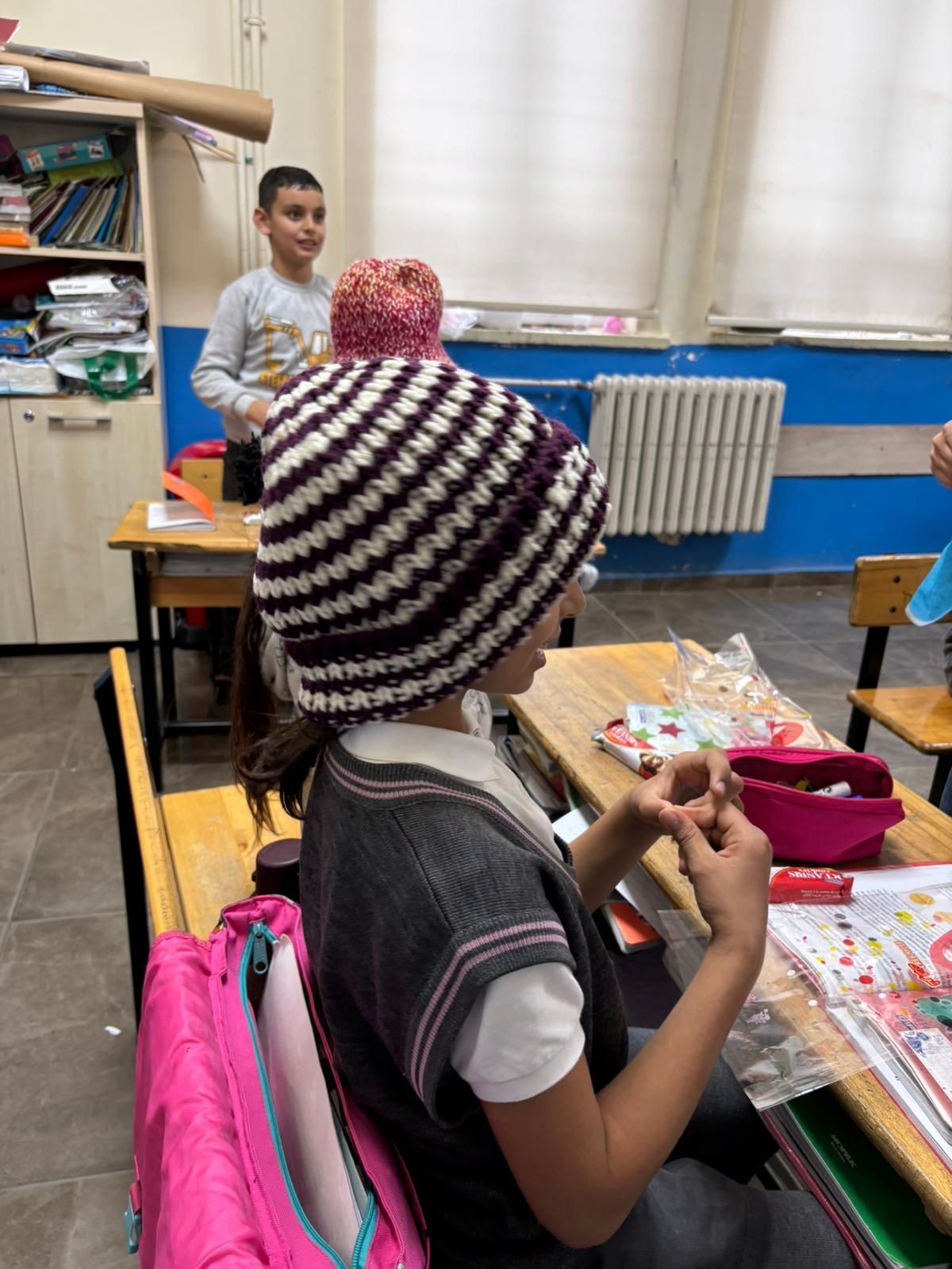 Çanakkale Onsekiz Mart Üniversitesi Sosyal Sorumluluk Proje Koordinatörlüğü tarafından köy okulunda öğrenim gören öğrencilere yönelik organize edilen Kardeşime Örüyorum Projesi kapsamında dördüncü okulumuz Karacaören İlkokulu oldu.