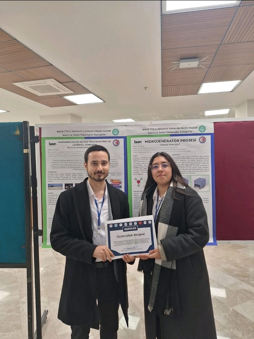 Üniversitemizi etkinlikte temsil eden Been Girişim ekibi, jüri değerlendirmeleri sonucunda “Marmara Soluk Alıyor: Piezoelektrik ile Çevresel Dönüşüm” adlı projeleriyle Enerji ve Temiz Teknolojiler tematik alanında üçüncülük ödülüne layık görüldü.