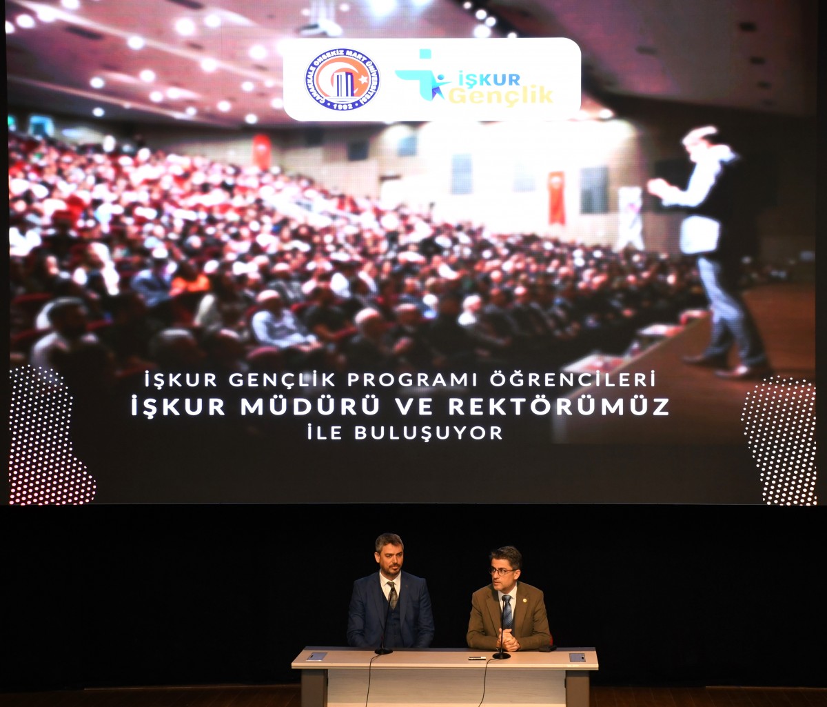 İÇDAŞ Kara Yusuf Kongre Merkezi’nde gerçekleştirilen "İŞKUR Gençlik Programı Öğrencileri Buluşması", üniversite yönetimi ile genç yetenekleri ortak bir paydada buluşturdu. ÇOMÜ Rektörü Prof. Dr. R.Cüneyt Erenoğlu ve İŞKUR İl Müdürü Mehmet Uğur Yavuz’un  katılımıyla düzenlenen etkinlik,  öğrenci odaklı bir diyalog zemininde ilerledi.