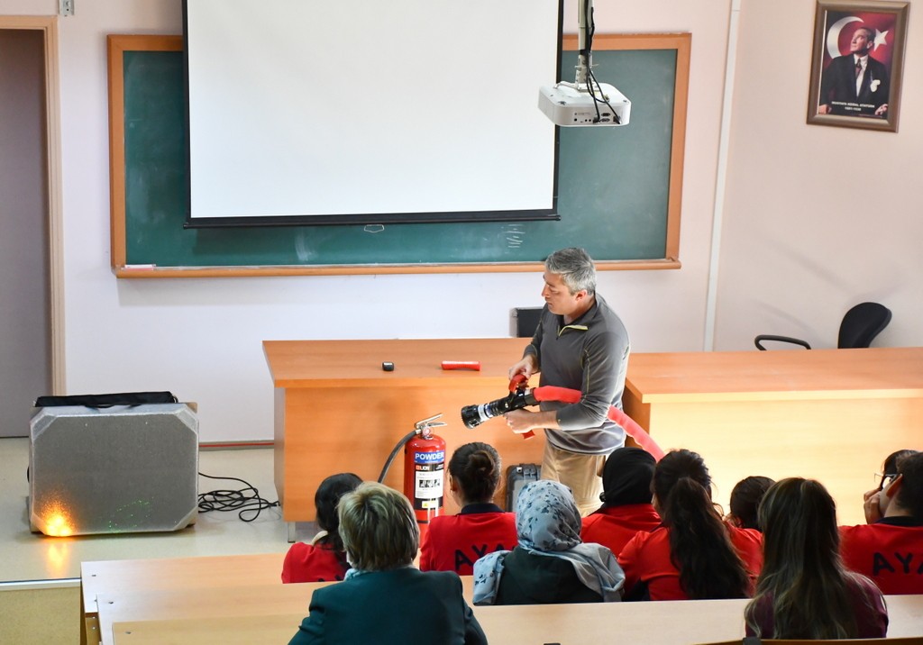 Katılımcılara yangın güvenliği, yangın anında doğru müdahale yöntemleri ve
