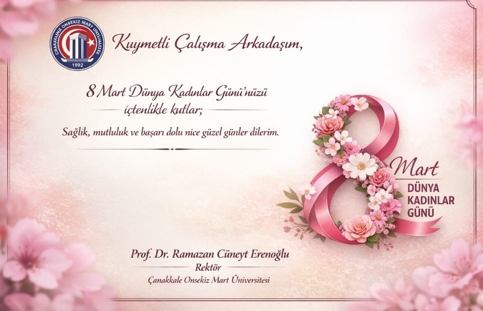 Dünyayı değiştiren fikirlerin, akademiyi yücelten emeklerin ve toplumun temel taşı olan nezaketin kaynağı kadınlardır. Başta ÇOMÜ ailemizin kıymetli üyeleri olmak üzere, hayatın her alanında iz bırakan tüm kadınların 8 Mart Dünya Kadınlar Günü kutlu olsun.