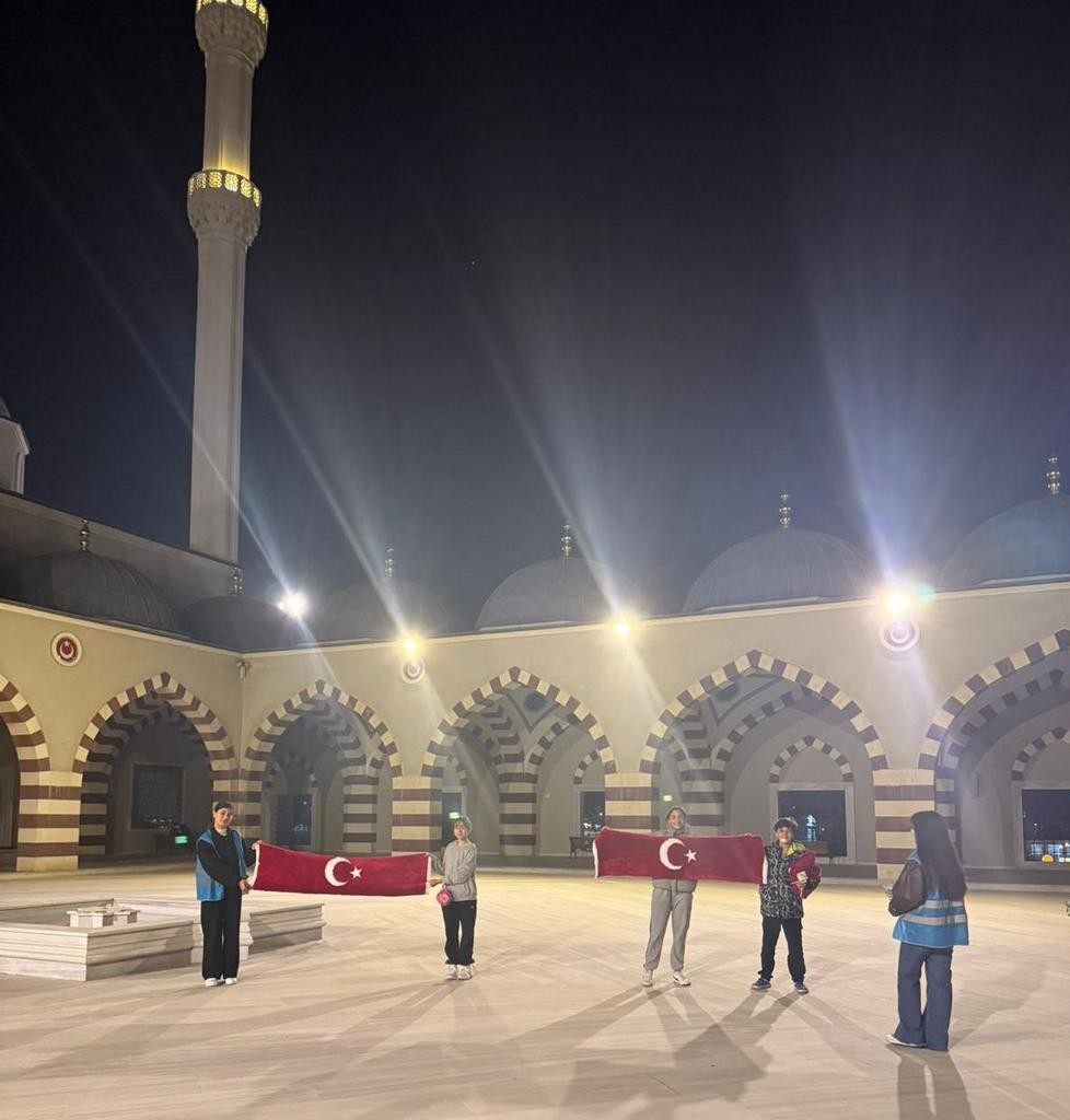 Doç. Dr. Hicran Özlem Ilgın ve gönüllü öğrenciler 18 Mart Hatime Ana Ulu Camii'nde